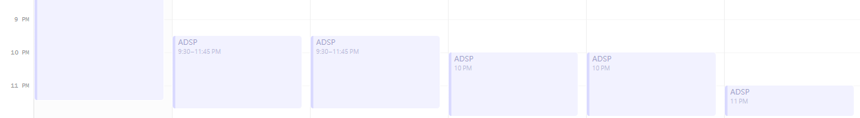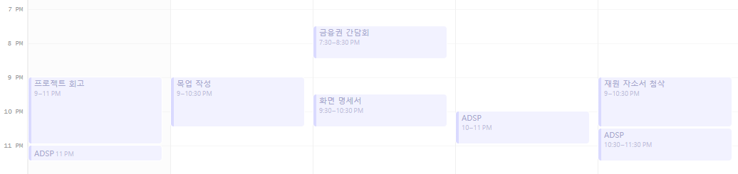 왼쪽부터 일월화수목금인데, 짤려서 안 보이는 것까지 합치면 월화수목금 총 10시간 30분을 했다.