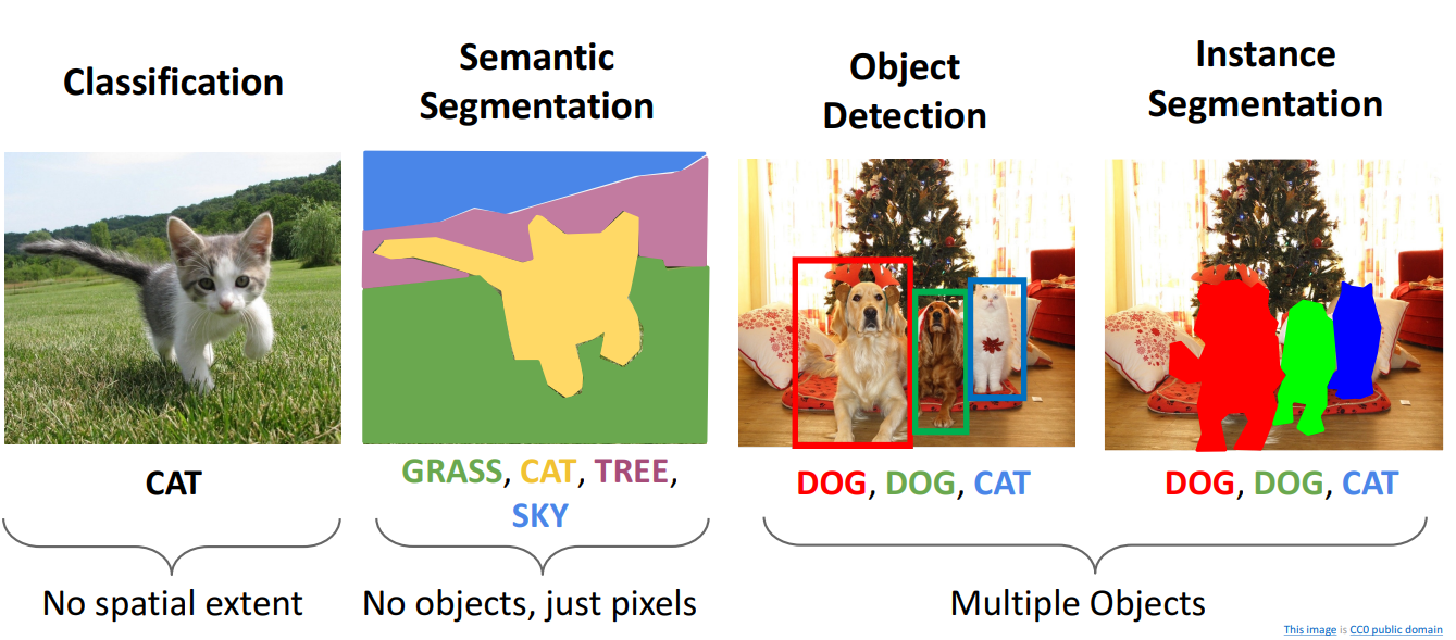 - 이미지에 나타나는 다양한 범주로 이미지의 부분부분에 레이블을 지정하는 것