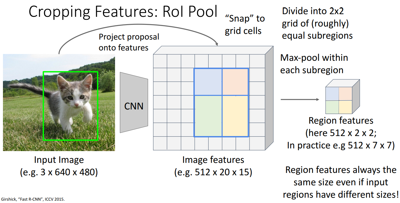 - cnn을 통과한 Feature map에서 RoI에 해당하는 부분을 추출