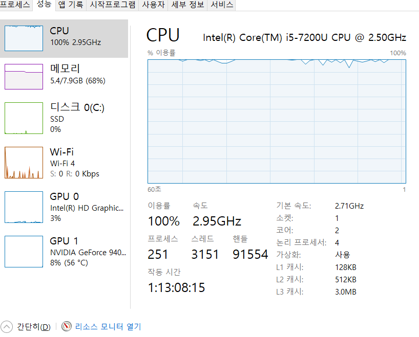 βββπ€―CPU μ¬μ©λμ΄ μμ²λΌ 100%μ λ¬νλ€... μμ¦ λ