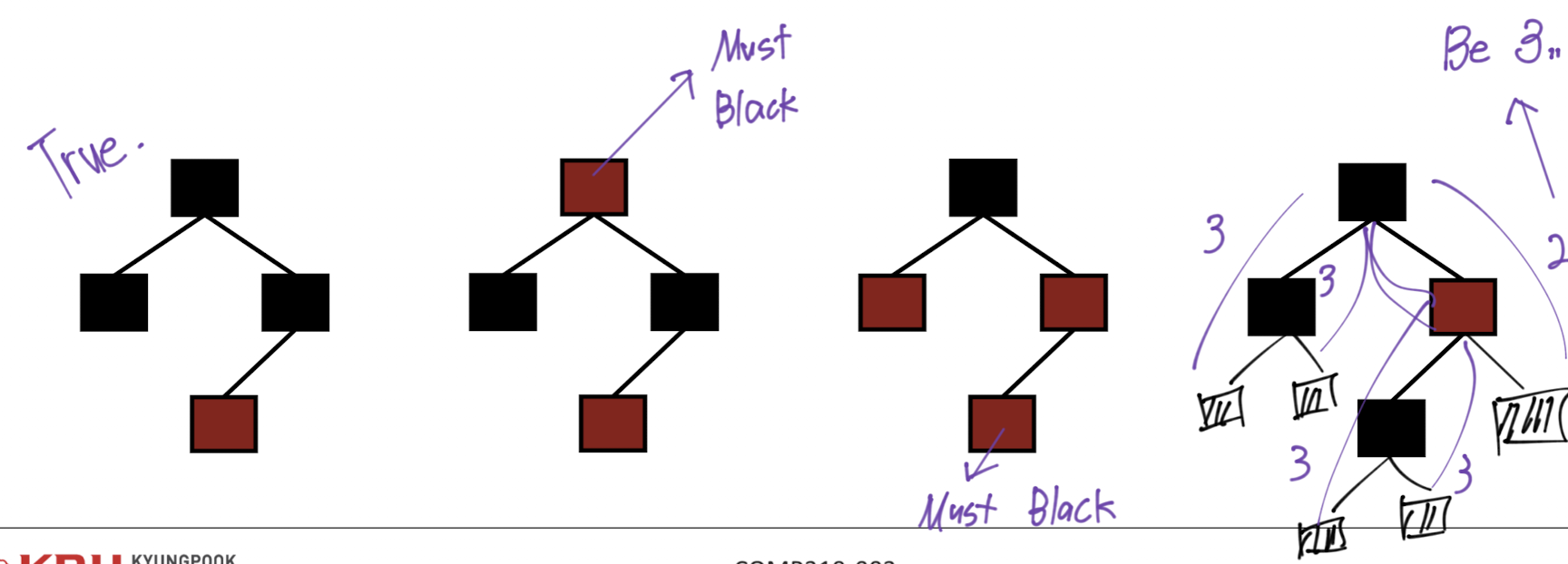 여기서 최소라는 것은 Red 노드를 사용하지 않고 오로지 Black으로만 채우면 저 개수가 된다.