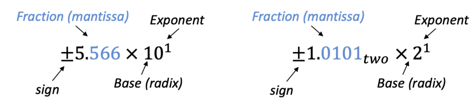 fraction과 exponent는 서로 trade-off relationship을 가집니다. fraction에 bit를 더 할당하면 더 정밀한 표현이 가능하고, exponent에 bit를 더 할당하면 더 큰(작은) 수를 표현할 수 있게 됩니다.