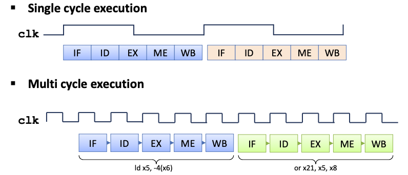 저번 포스트에서는 single cycle implementation에 대해 알아보았습니다. 이는 한 사이클에 반드시 한 명령어를 처리하기 때문에 단순하고 간단하다는 장점은 있지만, 단점이 2개 있습니다.