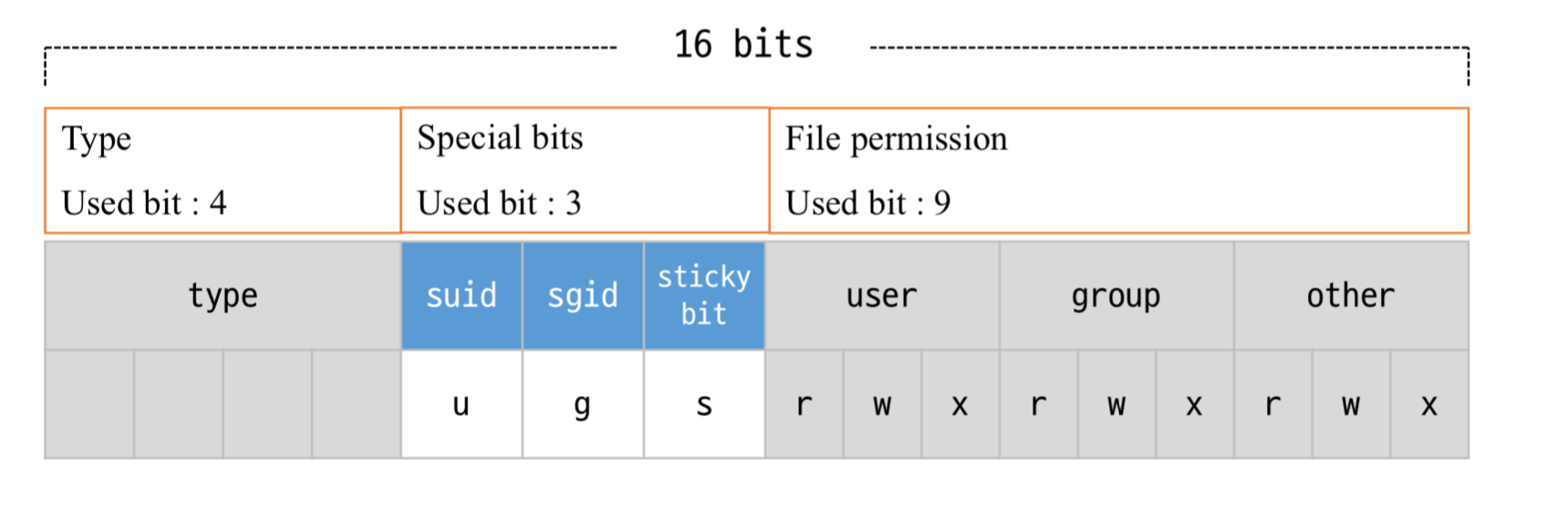 struct stat의 멤버로 16비트로 구성