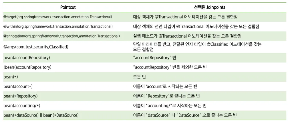 @Aspect 어노테이션을 사용해 클래스를 Aspect로 정의하고, @Component로 스프링 빈에 등록execution 등)을 사용해 Aspect가 적용될 메서드나 클래스 범위를 지정@Before, @After, @Around 등 어드바이스 어노테이션을 사용해 실행 시점을 지정하고, 관련 작업을 수행한다.Spring AOP는 횡단 관심사를 Aspect로 모듈화하여 코드의 재사용성과 가독성을 높이고, 유지보수를 쉽게 할 수 있는 강력한 도구이다. 주로 로깅, 트랜잭션, 예외 처리 등 공통 기능을 관리하는 데 유용하며, 스프링에서 제공하는 어노테이션(@Aspect, @Around, @Before 등)을 활용해 간단하게 적용할 수 있다.