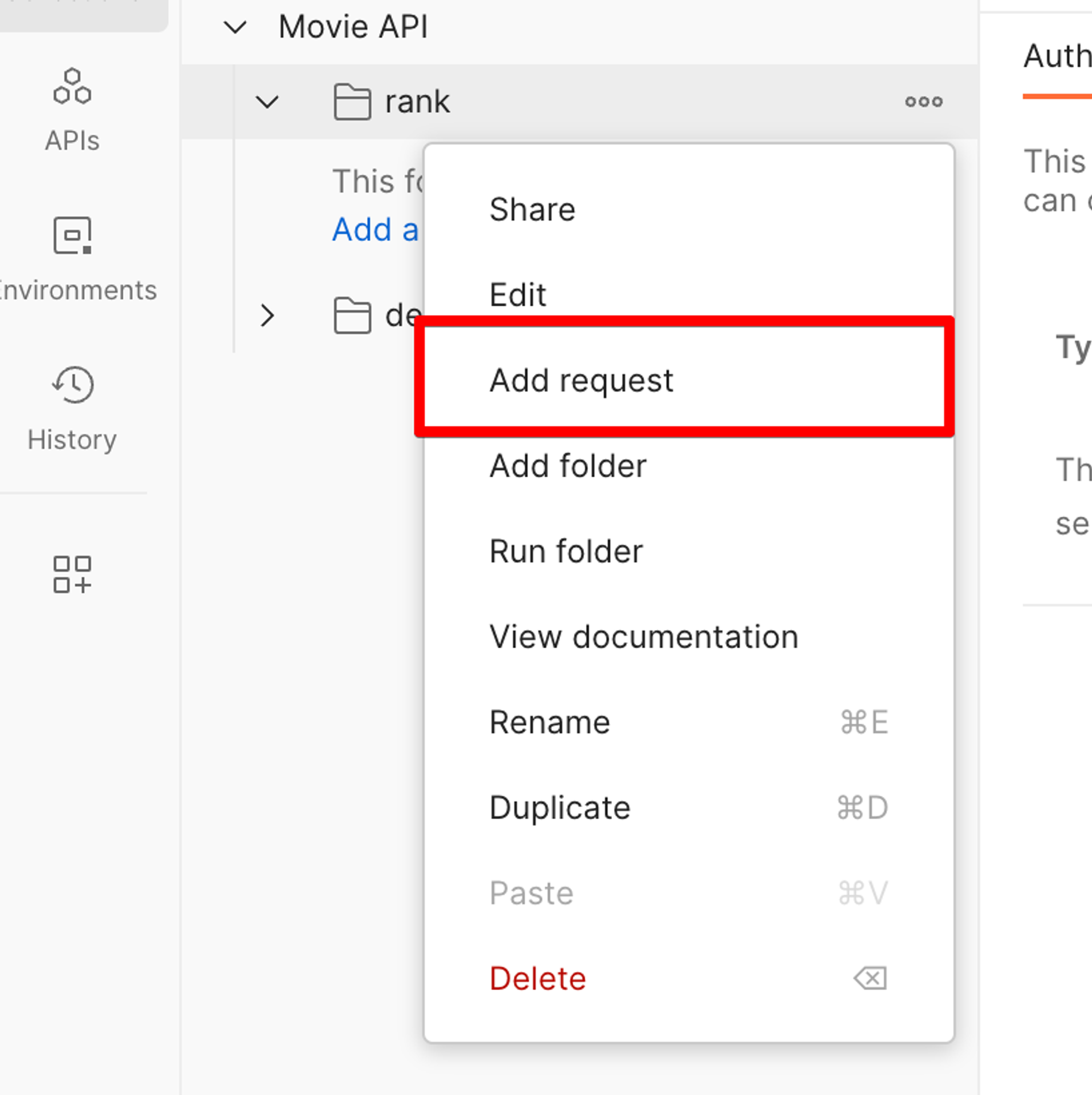 - 실제로 API에 대한 테스트를 진행하기 위해서는 Request를 생성