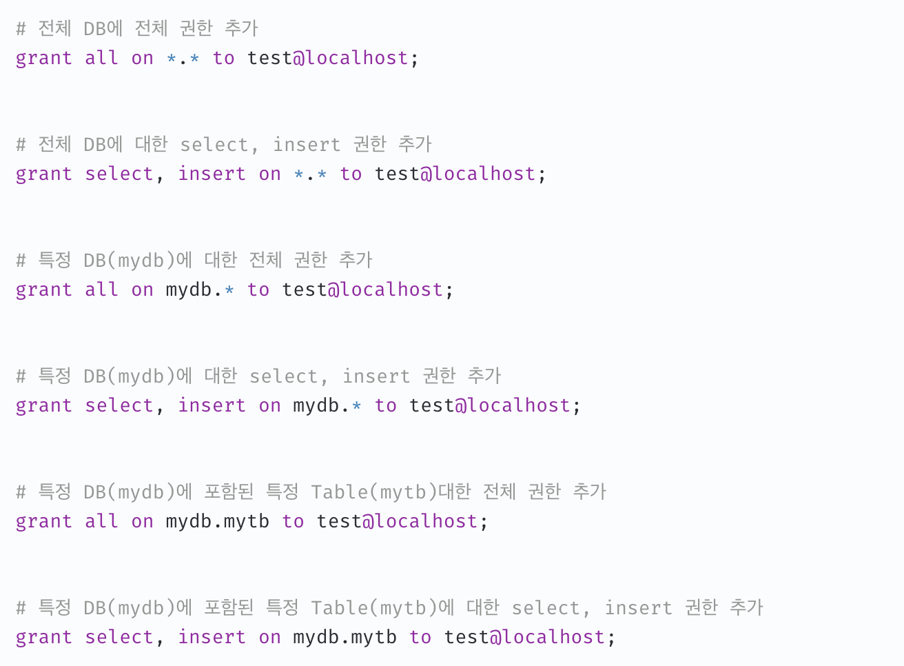 mysql 8.x부터는 grant all로 사용자 생성 및 권한 동시 부여 불가능