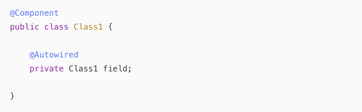 👇🏻등록된 Class2의 빈을 알아서 찾아와 주입한다. 생성자가 하나일 경우 어노테이션을 붙이지 않아도 해당 생성자를 자동 주입의 대상으로 인식한다.