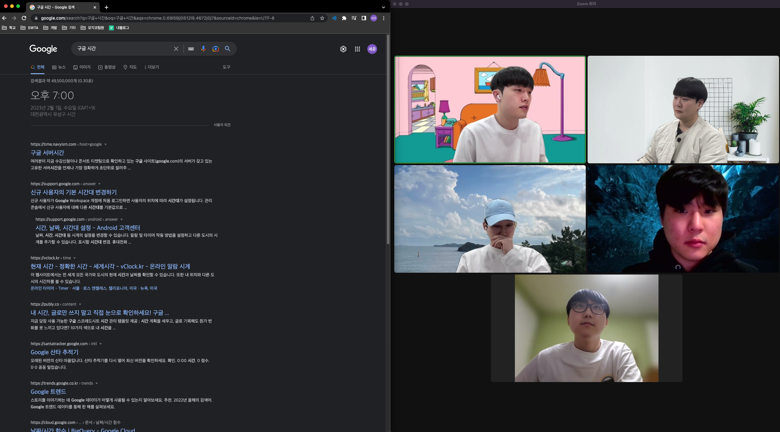 Zoom을 통한 비대면 모임 (경우에 따라서 대면)