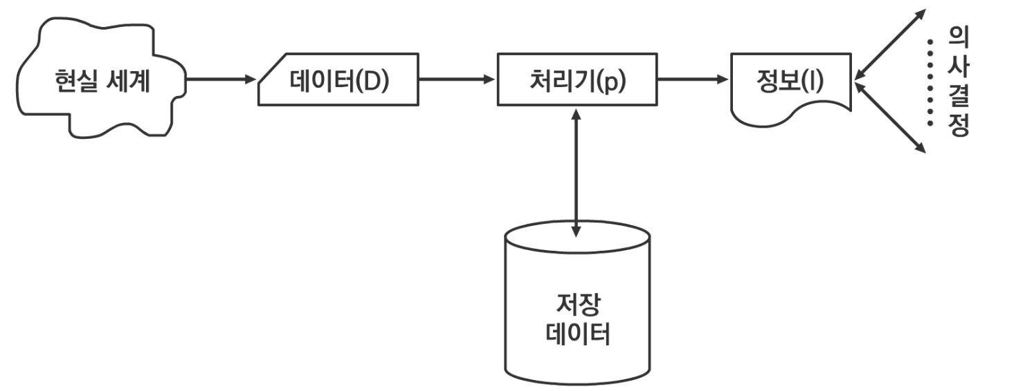 - 한 기관을 위해 데이터를 수집, 조직, 저장하고 필요 시에 처리하여 의사 결정에 유용한 정보를 생성, 분해하는 수단