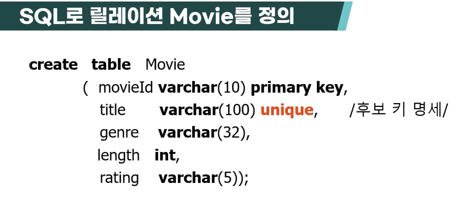관계 데이터 모델을 SQL DDL을 이용해 정의하는 방법을 배워 본다.