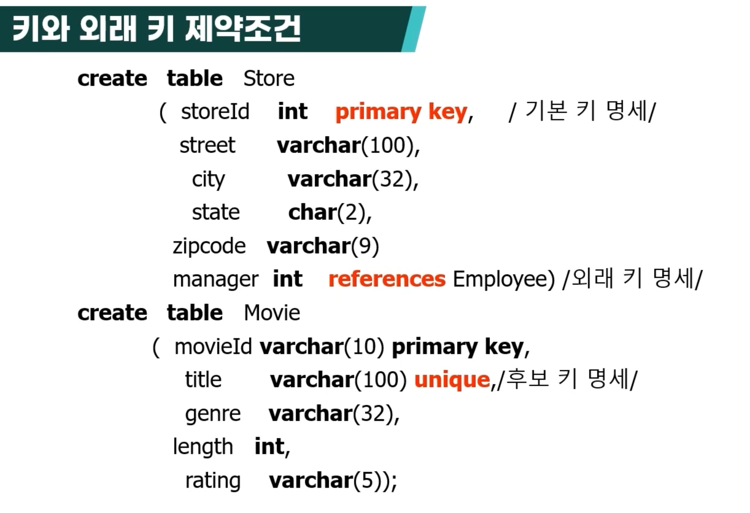 - 키 제약 조건