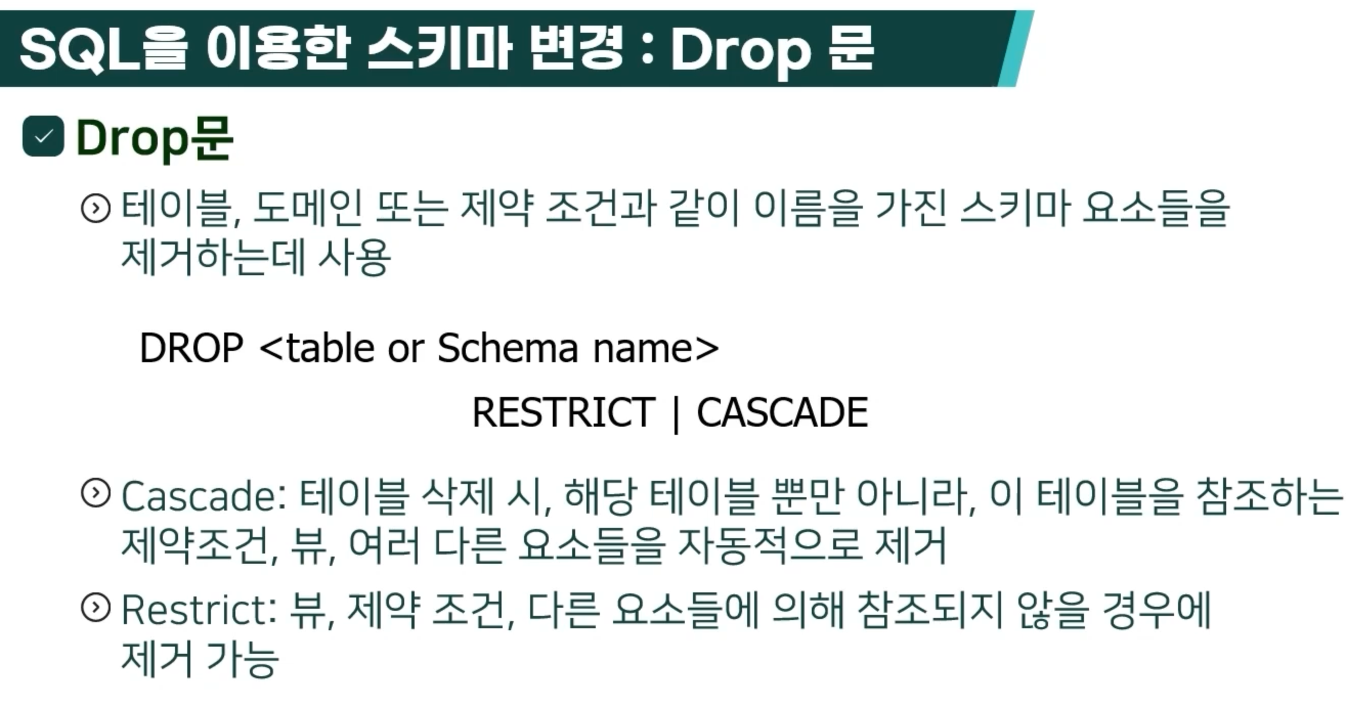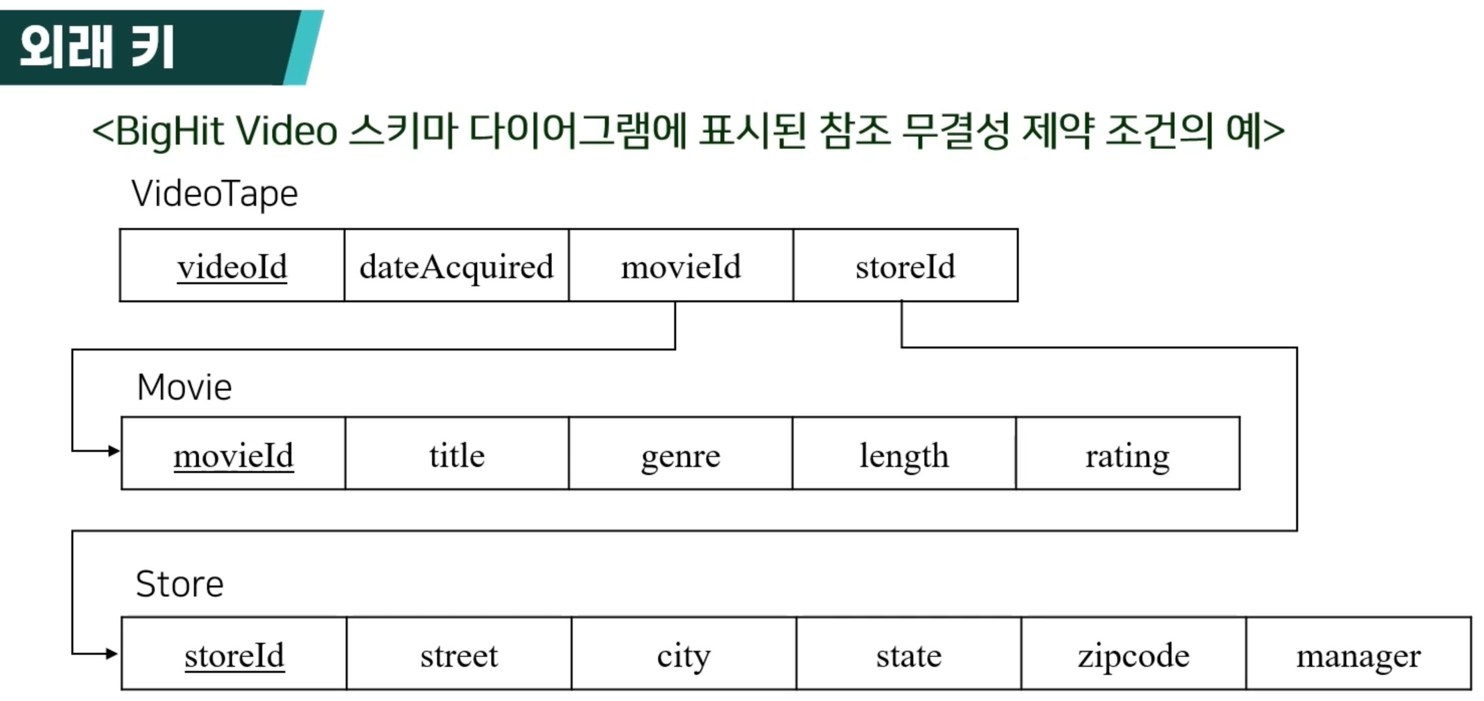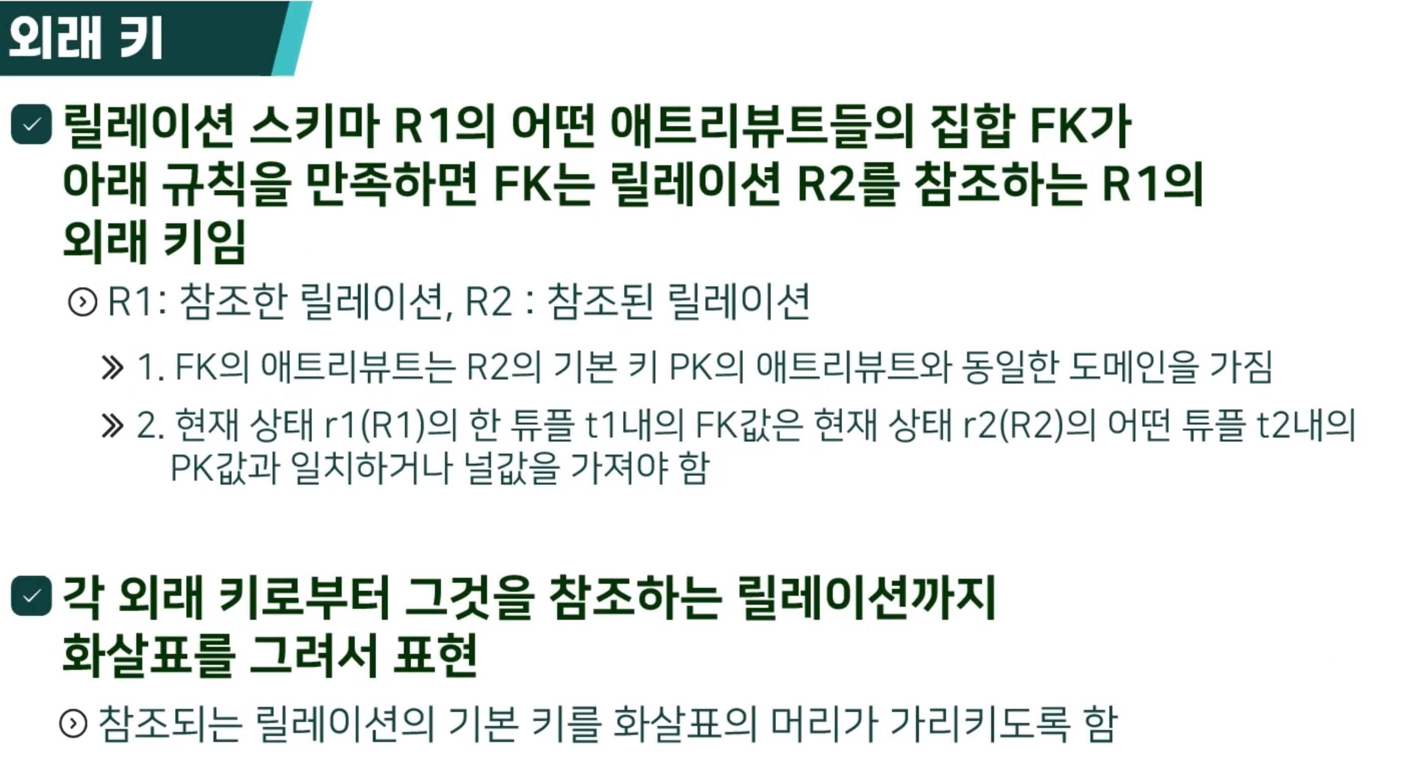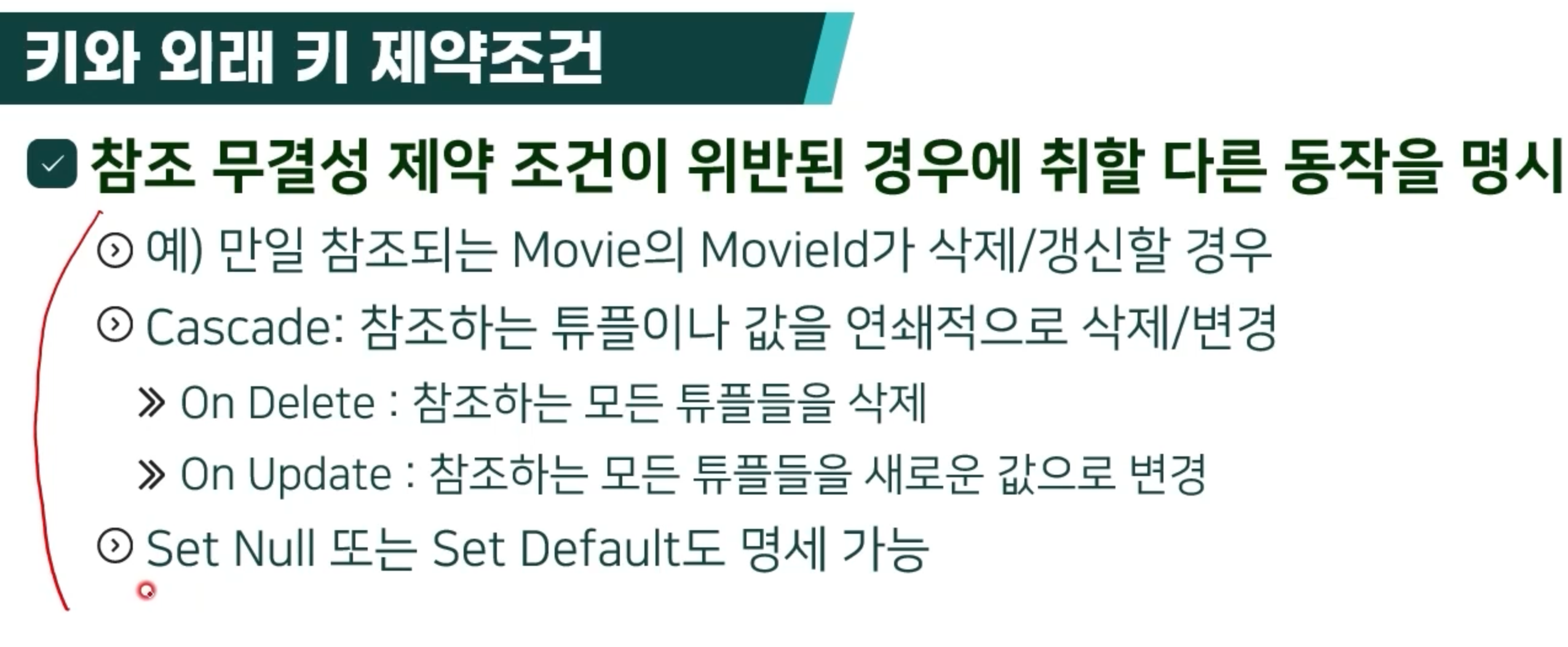 - 참조 무결성 제약 조건 (잘못된 것이 없다)