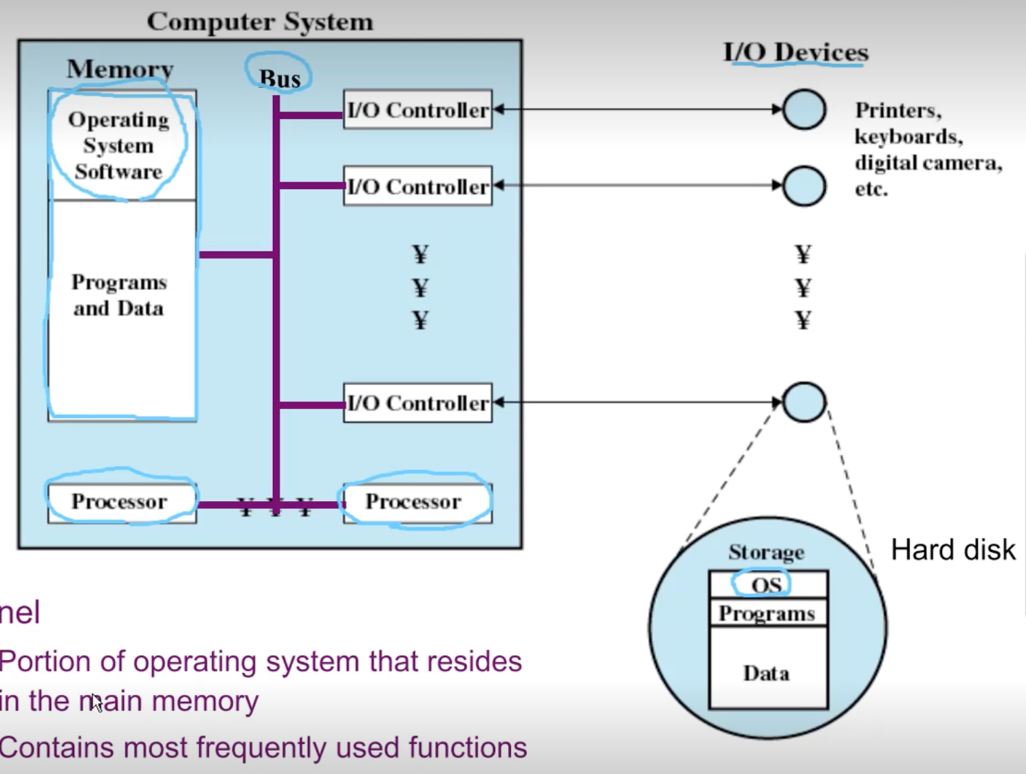 메인 메모리 , I/O Controller, Bus(데이터 이동 통로) 로 연결되어있음.