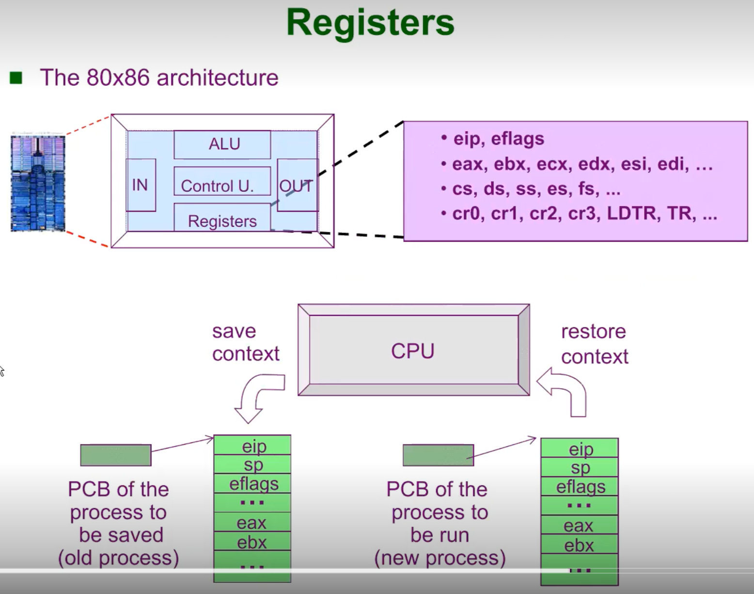 운영체제는 그때 당시에 만들어져서 컴퓨터에 실행되고 있는 모든 프로세스를 각 프로세스의 정보를 저장