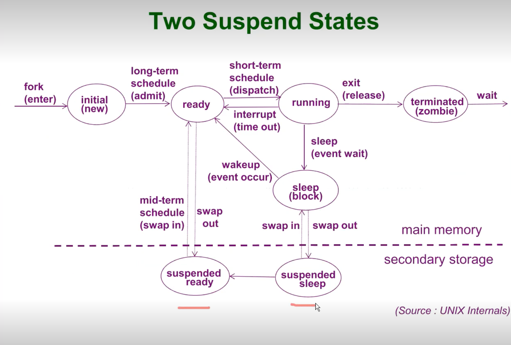 Terminated 도 프로세스로 남아있긴함. 단, wait system call 시 완전히 시스템에서 사라짐