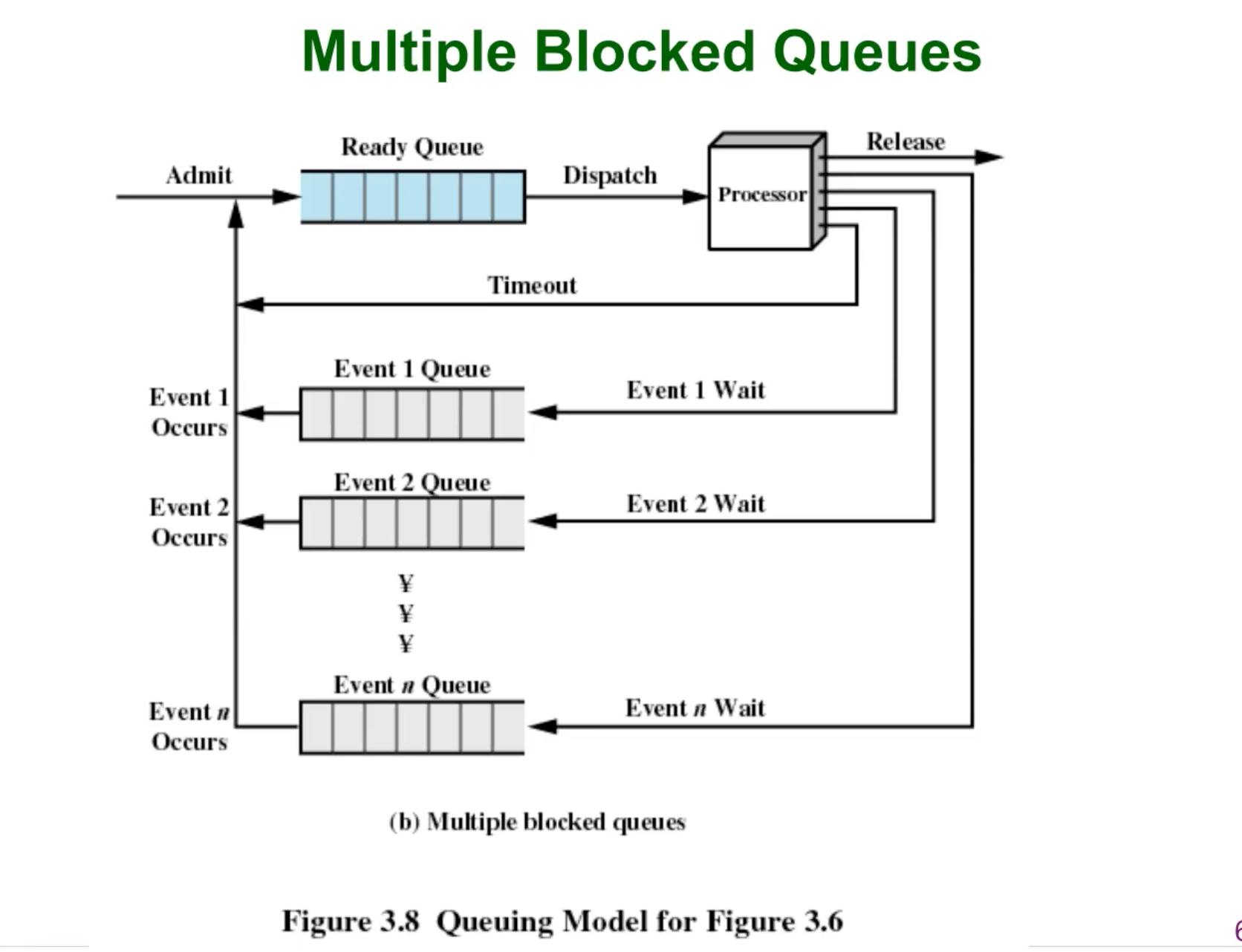 실행상태에 있는 프로세스에게 발생하는 이벤트에 따라서 운영체제 프로세스 관리 기능은 프로세스 상태를 변화시킴.
