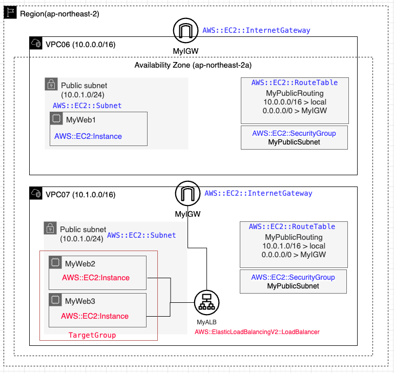 앞서 우리는 VPC07에 퍼블릭 서브넷을 만들고, 그 안에 MyWeb2, MyWeb3 두 개의 EC2 인스턴스를 배치했다.