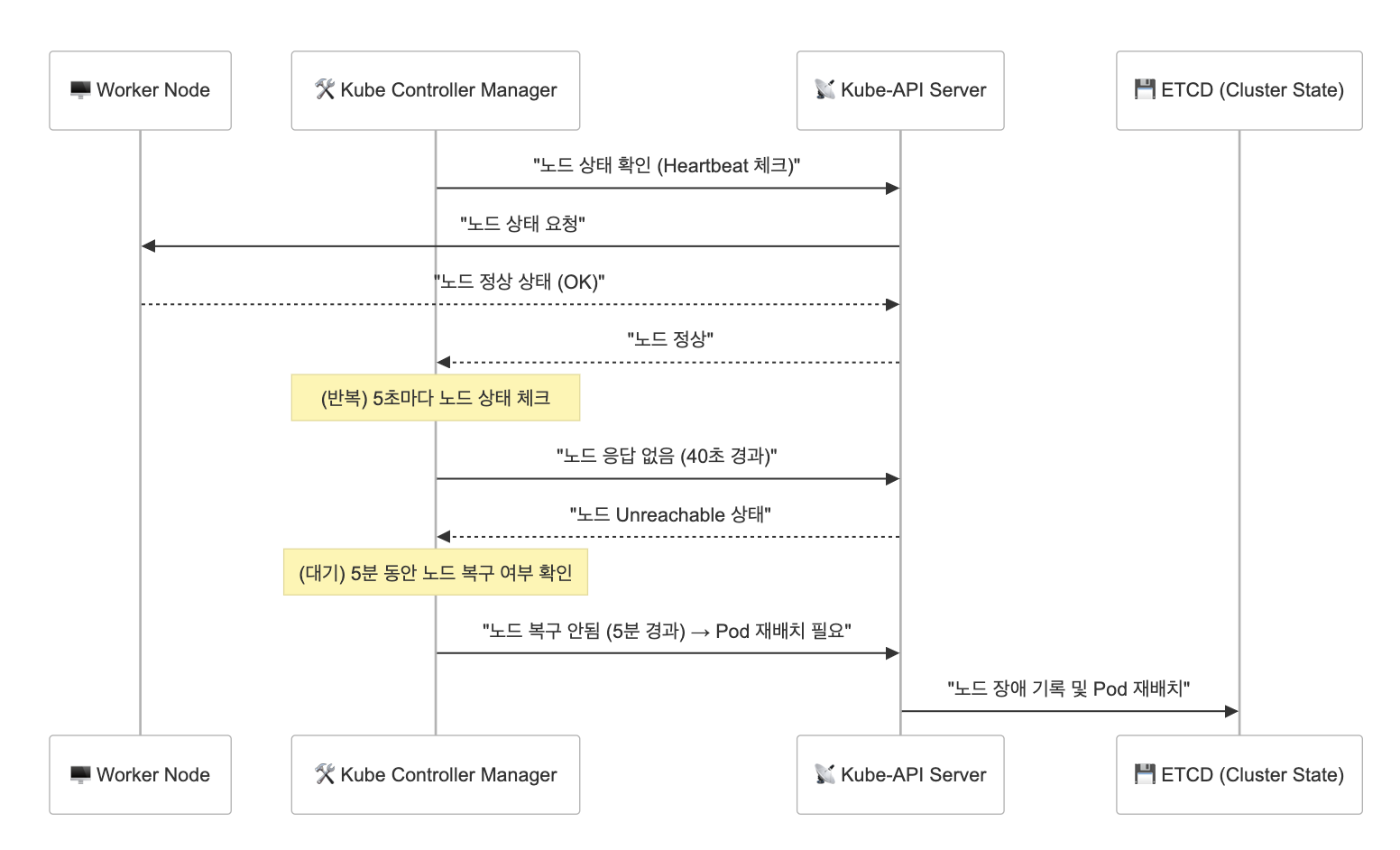 ✔ Node Controller → 노드의 상태를 감시하고, 장애가 발생하면 대응함.