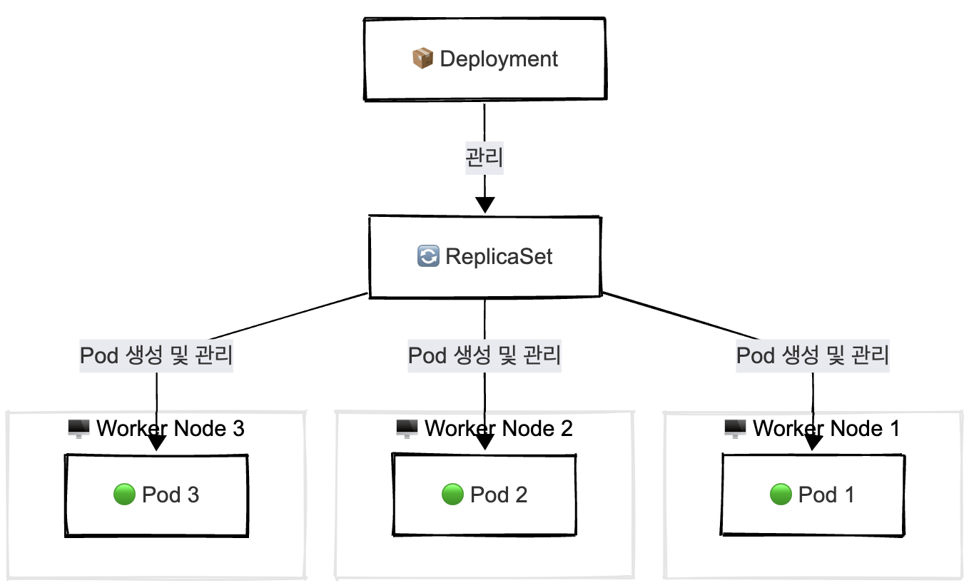 ✔ Pod과 ReplicaSet 위에 배치되는 상위 개념으로, 애플리케이션 배포를 관리할 수 있다.