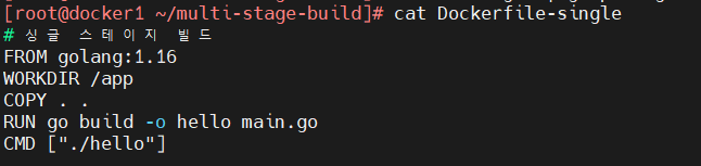 이미지 빌드 : docker build -t single-stage -f Dockerfile-single .