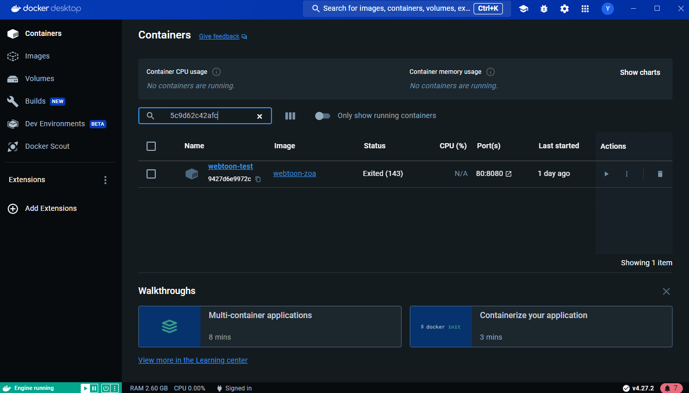 3-1. docker desktop 내부에서 image가 생겼는지 확인합니다.