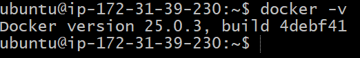 위와 같이 입력하고 나면 docker -v를 입력하여 설치가 되었는지 확인해줍니다.