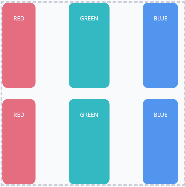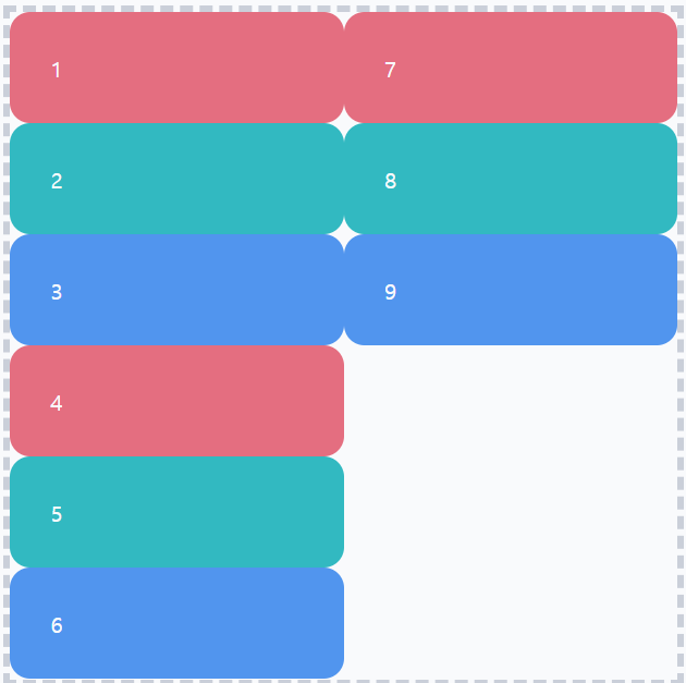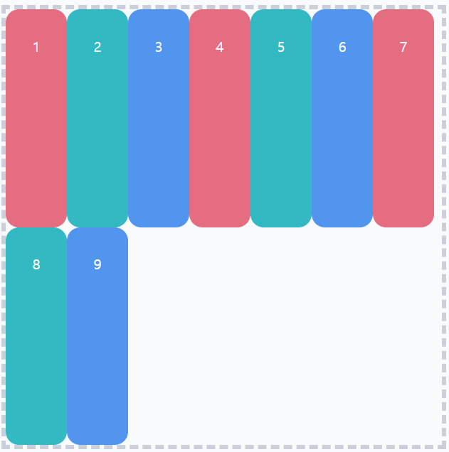💨기본적으로 요소들은 기본축 방향으로 순서대로 배치되고, 교차축 방향으로는 꽉채워서 정렬된다.