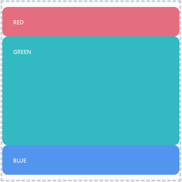 뒤에 있는 1은 상대적은 숫자이다. 기본값은 0이다. 0일땐 늘어나지 않으며 숫자를 써줄 때 숫자에 비례해서 더 많이 늘어난다. 즉, grow값을 blue에게 2를 주었다면 green보다 커질 것이다.