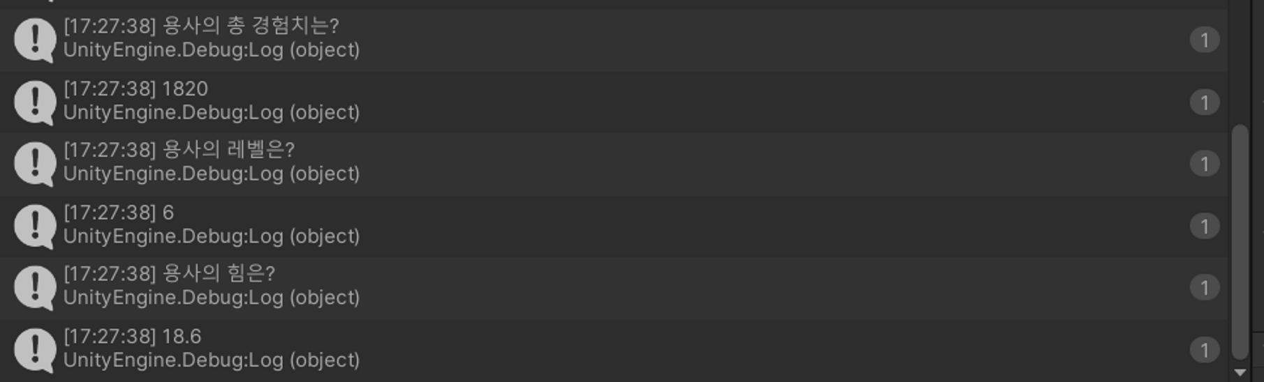 Debug.Log("용사는 만렙입니까?" + isFullLevel);