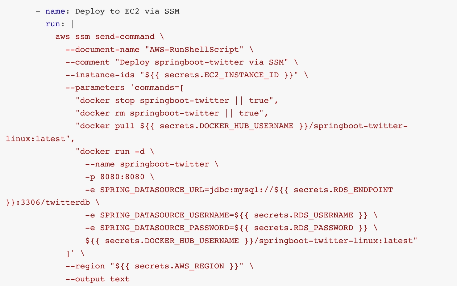 우선, AWS SSM은 GitHub Actions가 EC2 서버에 직접 SSH로 들어가지 않고, AWS를 통해 더 안전하게 명령을 대신 실행시키는 방식