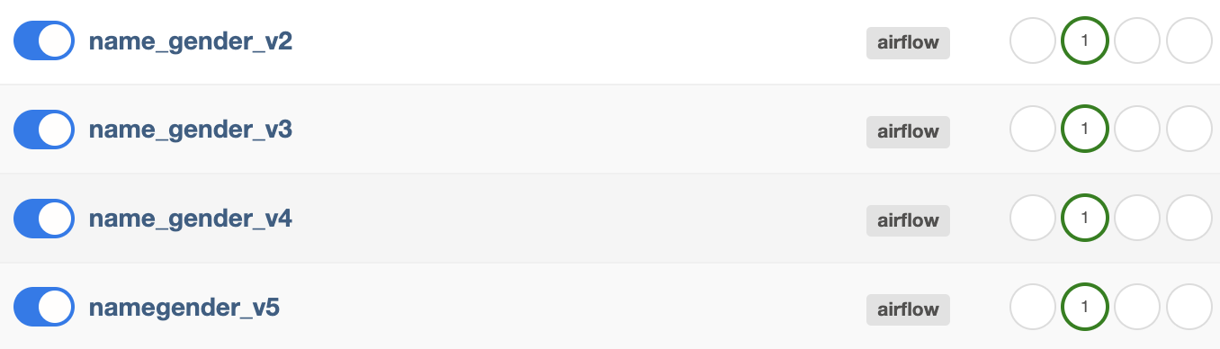 복사한 각 dag의 환경변수값(스키마 등등)과 같은 것들을 내꺼로 바꿔주고 실행해보면 각버전의 Dag들이 모두 정상적으로 동작하는걸 확인할 수 있다.