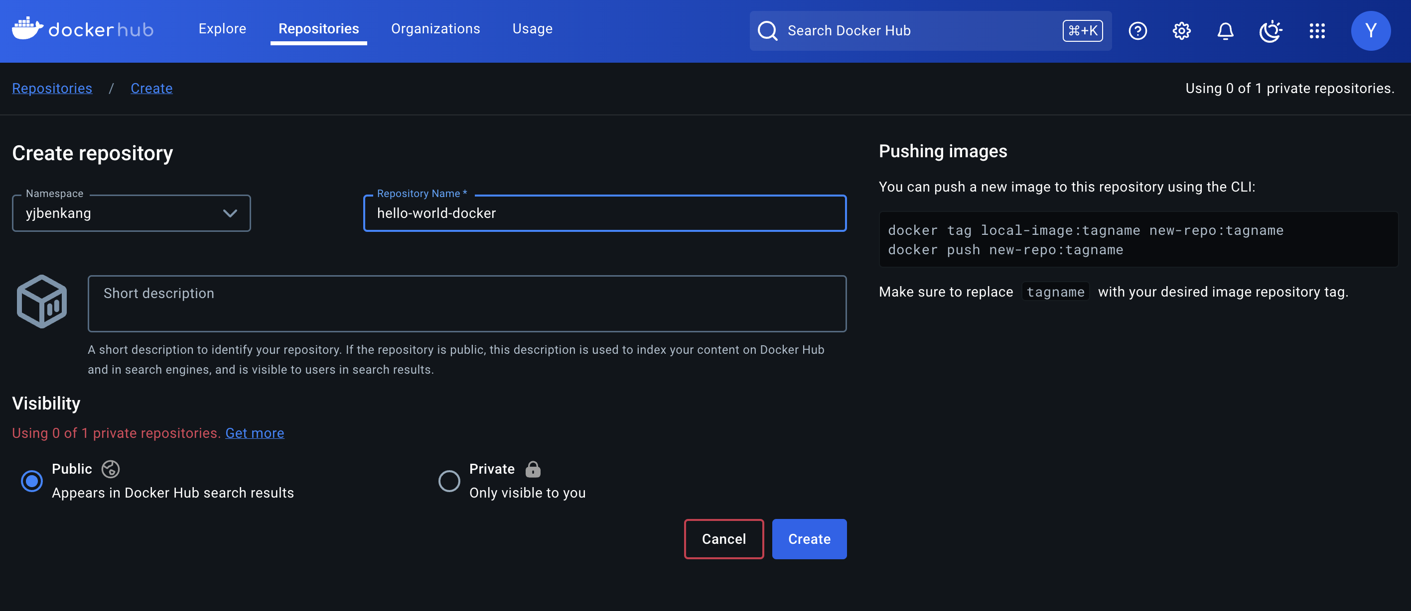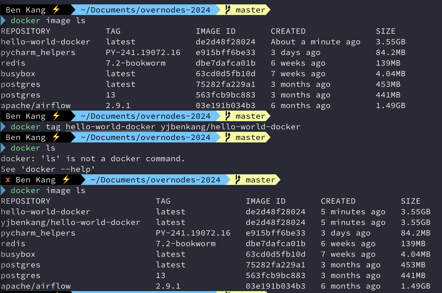 - docker tag hello-world-docker yjbenkang/hello-world-docker