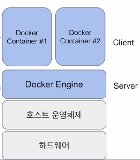 - Docker Container : 이 Docker Image를 독립된 환경에서 실행한 것. os와 다른 컨테이너와 별도로 docker engine위에서 돈다 (host 컴퓨터 위가 아닌). host os와 다른 컨테이너와 충돌이 생기지 않게 보장. VM과 비슷하지만 훨씬 light-weight. VM은 이자체에 OS를 가지므로 헤비하고 속도도 느리지만 컨테이너는 docker container가 다수로 돌 수 있는 세팅.