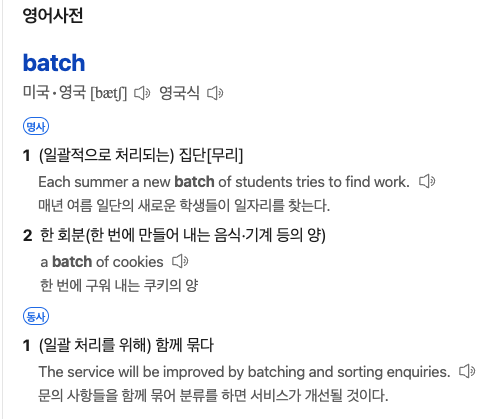 배치(Batch) 처리란, 일정 시간 동안 데이터를 모아두었다가 한 번에 일괄 처리하는 방식이다.