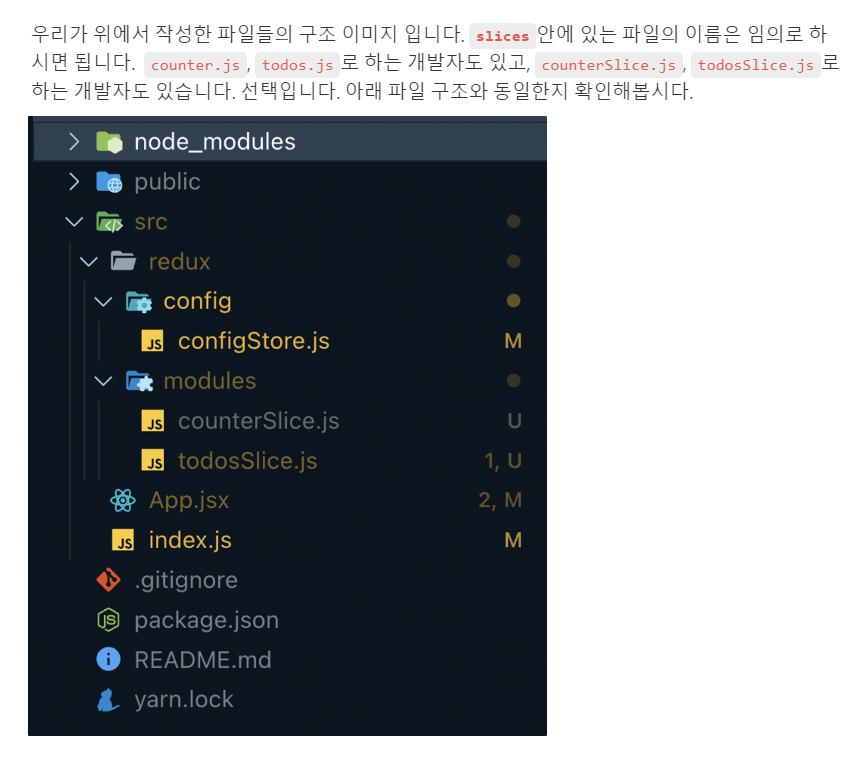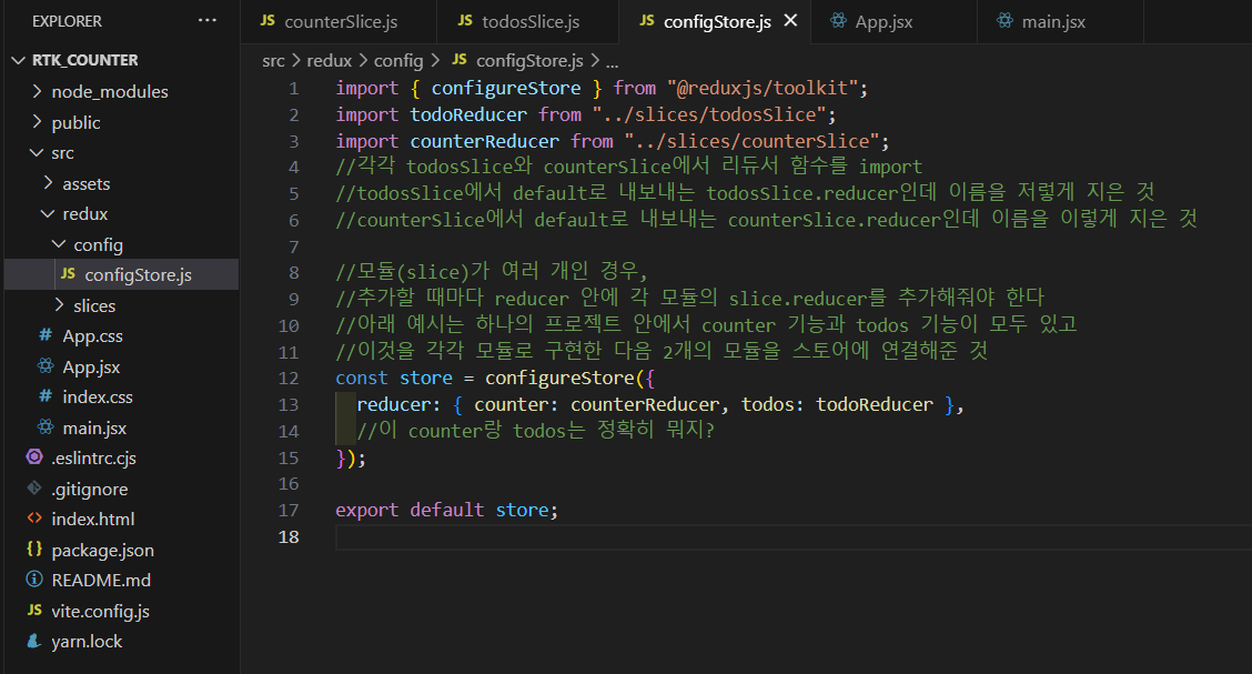 13번 라인 reducer 필드 안의 counter와 todos는 단순히 이름이다!