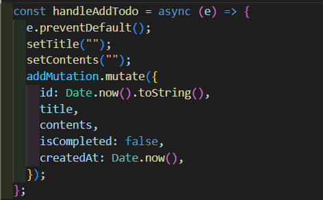 그리고 그 addMutation은 handleAddTodo가 실행될 때,