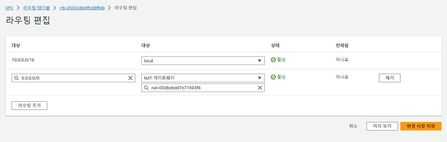 (현재 라우팅에 들어와 있습니다.) 오른쪽에 있는 라우팅 편집을 눌러줍니다.