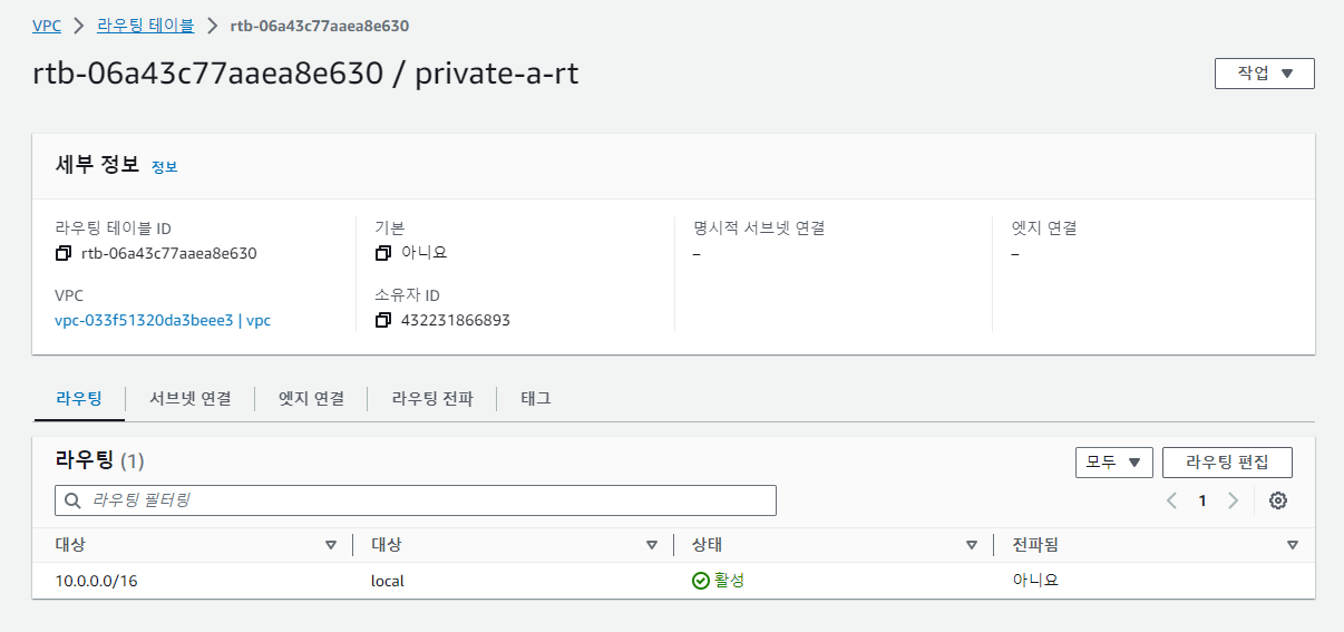라우팅 테이블 생성 버튼을 누르셨다면 이러한 화면이 나오는데,