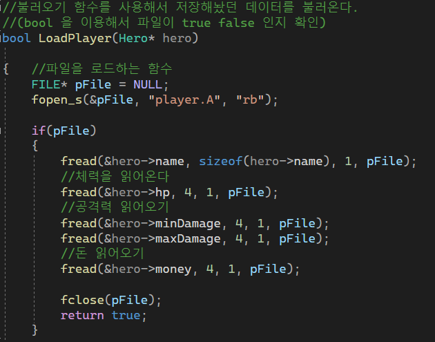 파일에 불러오기는 fread로 불러온다.
