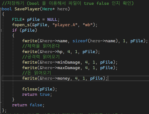 파일에 저장하기는 fwrite 로
