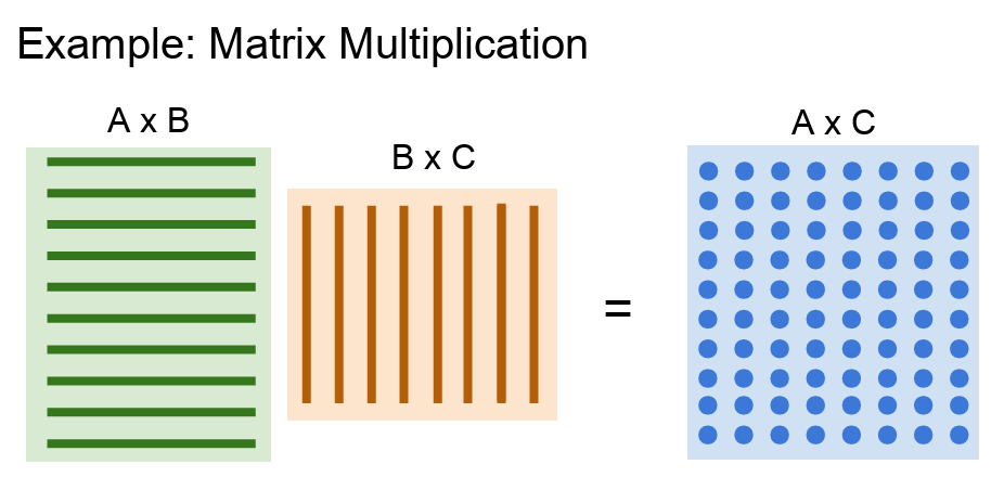 - GPU는 결과 행렬의 각 요소들을 병렬로 계산할 수 있으며 이러한 특성 때문에 GPU는 엄청나게 빠르다