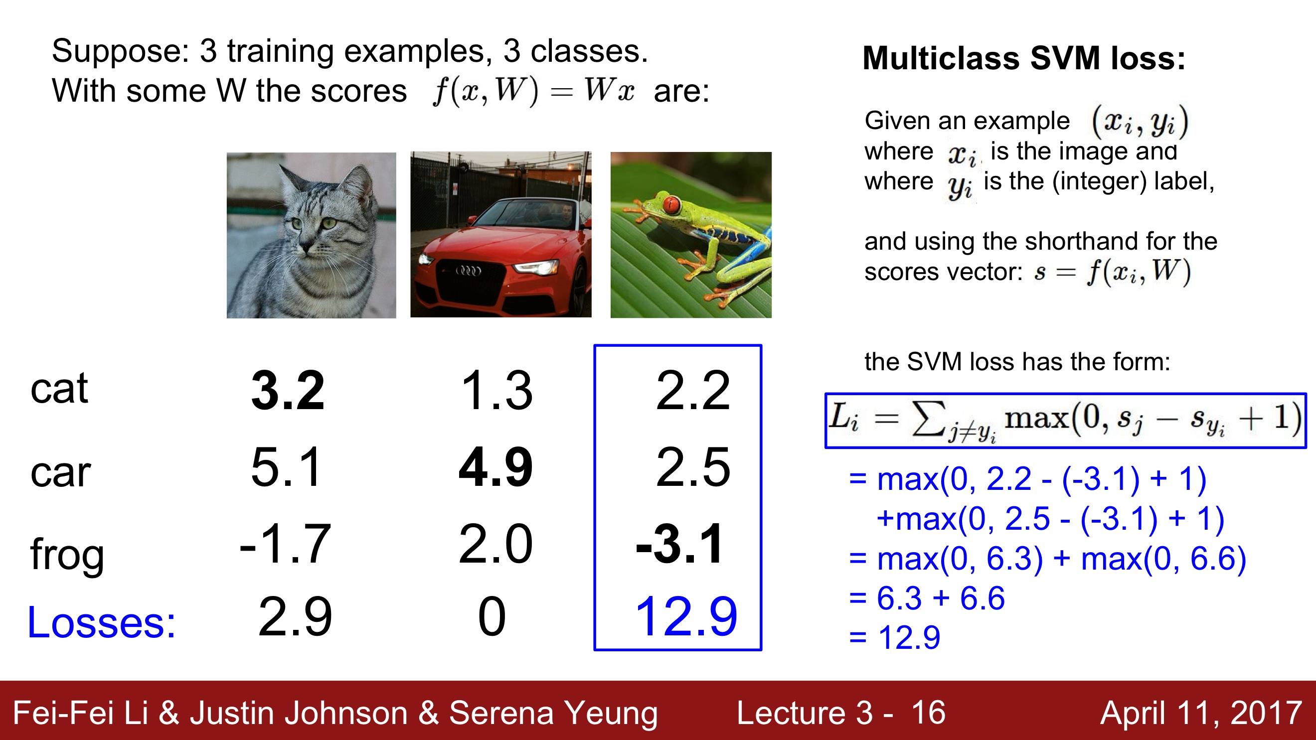 - L_i = Σ_j≠y_i max(0, s_j - s_yi + Δ)