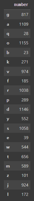 df ## 'orient' 파라미터가 'index'로 설정되어 있으므로, 딕셔너리의 각 키(letter)가 DataFrame의 인덱스로 설정되고, 해당하는 값(num)은 'number'라는 이름을 가진 열에 할당됩니다.