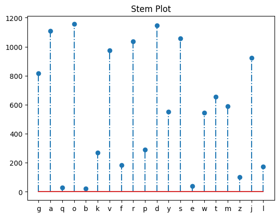 plt.stem(df.index, df['number'], '-.') ## Stem plot은 각 데이터 포인트를 선과 점으로 표시하는 그래프로, 이산 확률 함수나 자기상관 등을 시각화할 때 유용하다