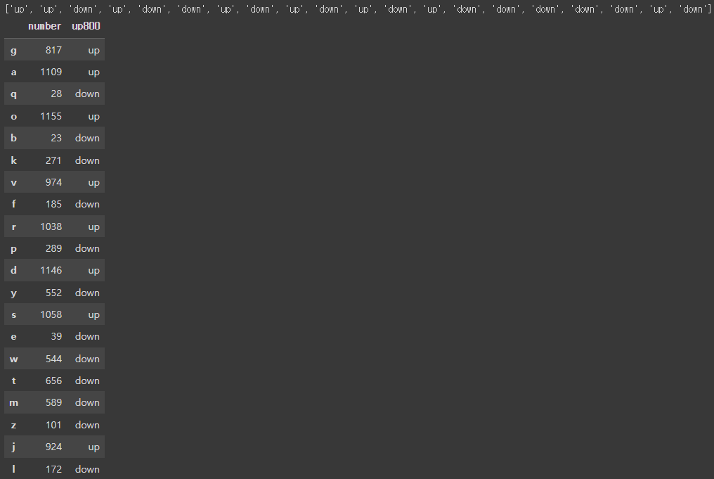 up_and_down =['up' if number > thres else 'down' for number in num_list] #리스트 컴프리헨슨