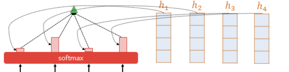 모든 인코더 셀의 은닉 상태(h1,h2,h3....hn)를 가져와서 유사도(sililarity)를 구한 뒤