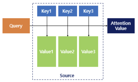 Q : Query (어떤 시점(t)일 때 디코더 셀에서의 은닉 상태) -> (인코더 - 디코더 어텐션인 경우)K : key (모든 시점의 인코더 셀의 은닉 상태)V : value (모든 시점의 인코더 셀의 은닉 상태)