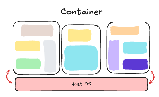 하이퍼바이저와 달리 컨테이너는 가상의 OS를 만드는 것이 아니라 Host OS의 환경을 공유하면서 필요한 프로세스만 격리하는 방식으로, 커널을 공유하기 때문에 Host OS의 기능을 모두 사용할 수 있다.