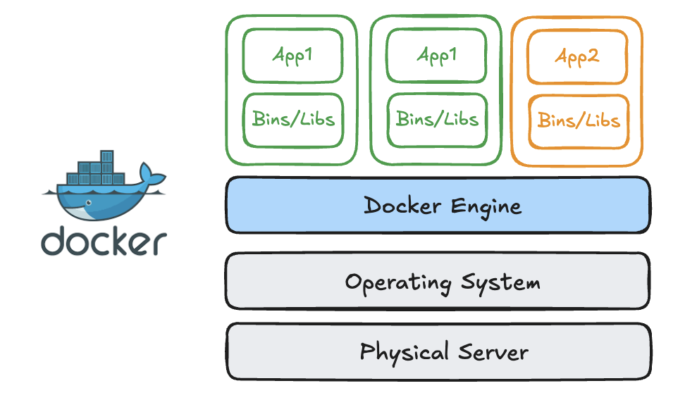 그림을 살펴보면 내 OS 위에 Docker Engine이 실행되는데 이 Docker Engine 이 컨테이너를 관리한다.